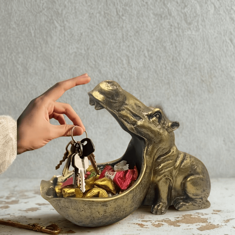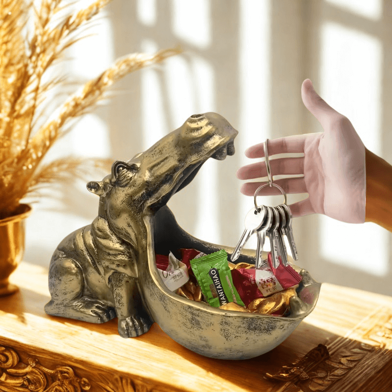 Brelok-figurka hipopotama w stylu art déco – złoty