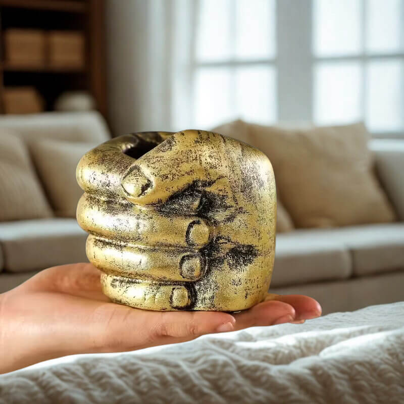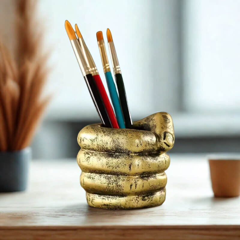 Dekoracja stołu – pojemnik na ołówki złota pięść