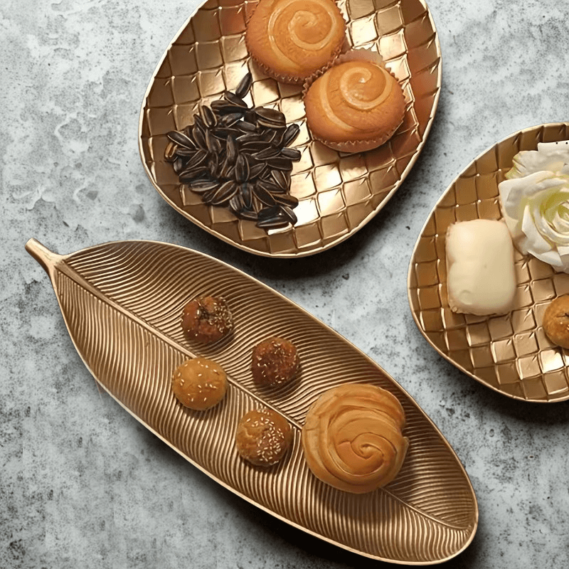 Nowoczesna miska stołowa w kształcie liścia – złota