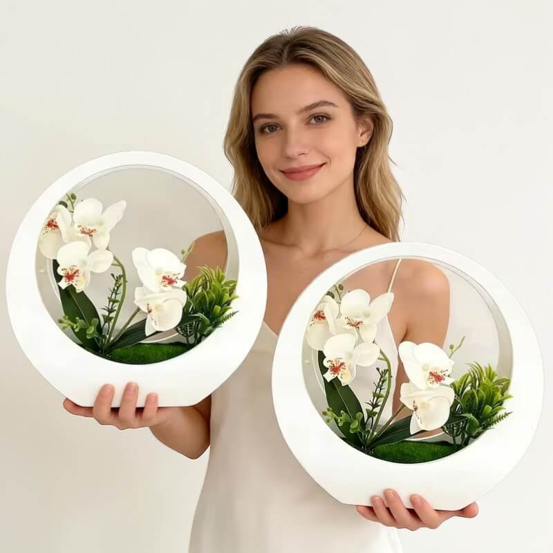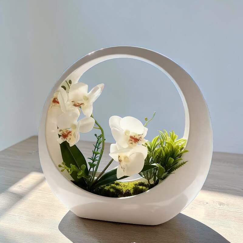 Realistyczna kompozycja ze storczyków w doniczce – biała
